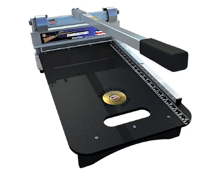 Το EZ Shear Marksman είναι ένας ευέλικτος, ελαφρύς κόπτης.Εξαιρετικά γρήγορες περικοπές σε μια ποικιλία προϊόντων χωρίς σκόνη, θόρυβο ή ηλεκτρικό ρεύμα.Το EZ Shear έχει σχεδιαστεί για να κόβει δάπεδα, όπως laminate, κατασκευασμένο ξύλο, πολυτελή πλακάκια ή σανίδες βινυλίου και άλλα.