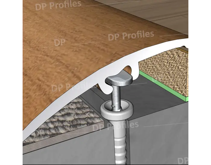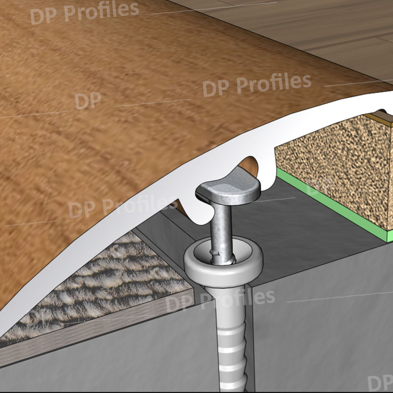 Χρήση: αρμοκάλυπτρο κουμπωτό με καρφί για κάλυψη υψομετρικών διαφορών κατά την τοποθέτηση ξύλινων και laminate δαπέδων.Η υψομετρική διαφορά που μπορεί να καλύψει είναι από 0mm έως 15mm.Στο κάτω μέρος του προφίλ υπάρχει εσοχή για ειδικό καρφί ώστε να μην τρυπηθεί το προφίλ εξωτερικά.Με αυτό τον τρόπο μπορεί να γίνει συγκράτηση σε δάπεδα που δεν έχει προβλεφθεί η χρήση βάσης